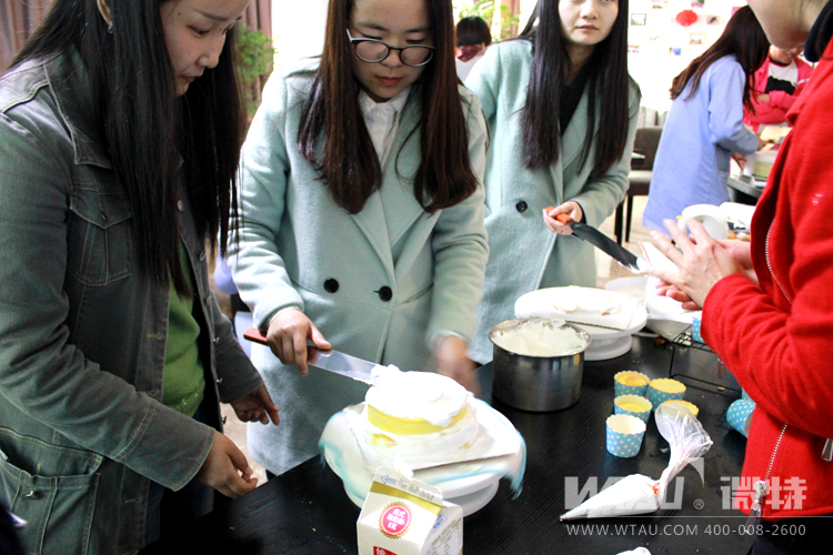 在老師的指導(dǎo)下大家共同努力,親手做出了精美的蛋糕??粗@些甜蜜的作品,眾女神還特邀請男神共同品嘗,讓男神們在這個(gè)特殊的“女人節(jié)”,不嫉妒、不抱怨,品嘗甜蜜!