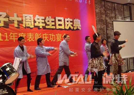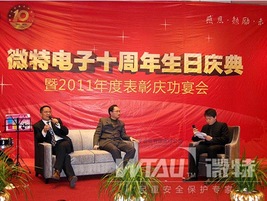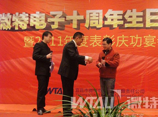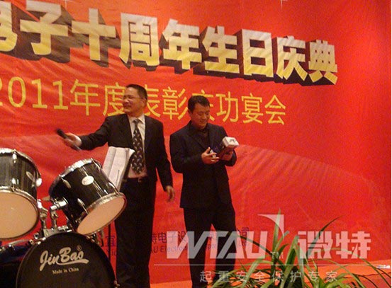 2011年度先進表彰,明星閃耀?,F(xiàn)生產(chǎn)部主管:羅毅,榮獲年度最燦爛的大獎“微特之星”稱號?。▓D為頒獎現(xiàn)場)